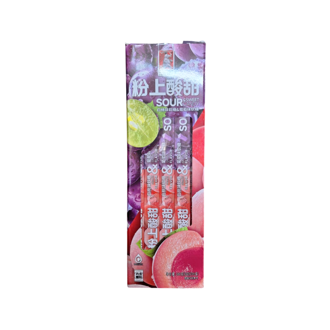 Конфета арт. 440244/ Жевательная кислая "2в1: персик и виноград" 28 г 20 шт. в кор.,